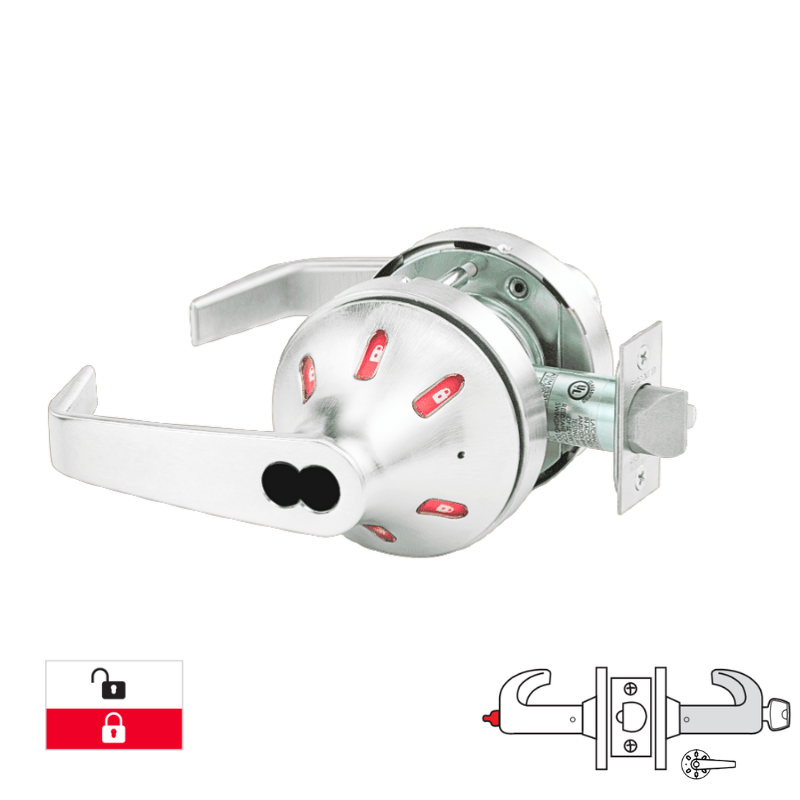 Sargent 70-V60-10XG05-VSLL Office Function Cylindrical Lock, Visual Indicator Trim Outside Only, White/Red, SFIC Less Core