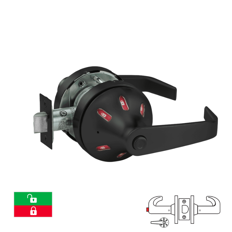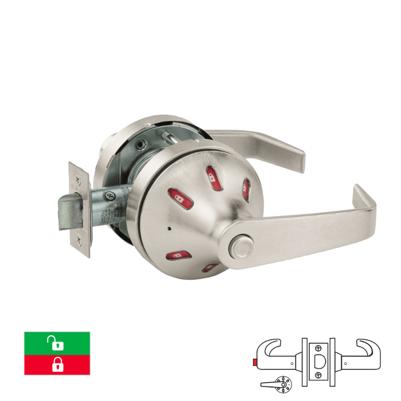 Sargent V03-10XU65-VSLL Privacy/Bathroom Function Cylindrical Lock, Visual Indicator Trim Inside Only, Green/Red, Non-Keyed