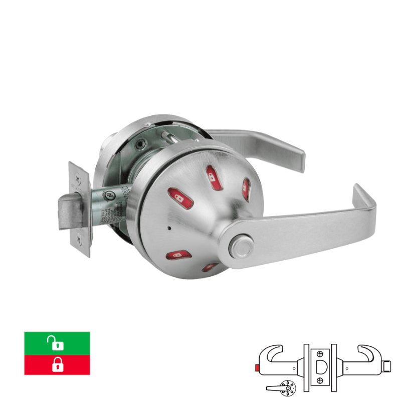 Sargent V03-10XU68-VSLL Hospital Privacy Function Cylindrical Lock, Visual Indicator Trim Inside Only, Green/Red, Non-Keyed