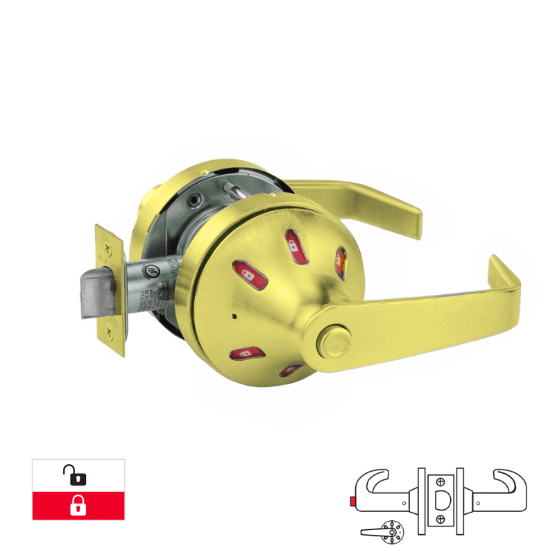 • Latch by either lever unless outside lever is locked by push button in inside lever